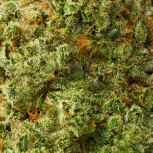 Appearance: Dense buds with dark purple, forest-green tones, fiery orange pistils, and a thick coat of frosty trichomes